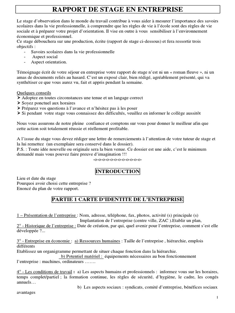 Introduction Du Rapport De Stage Exemple Et Conseils Pourquoi Avez Vous Choisi Cette Entreprise Rapport De Stage